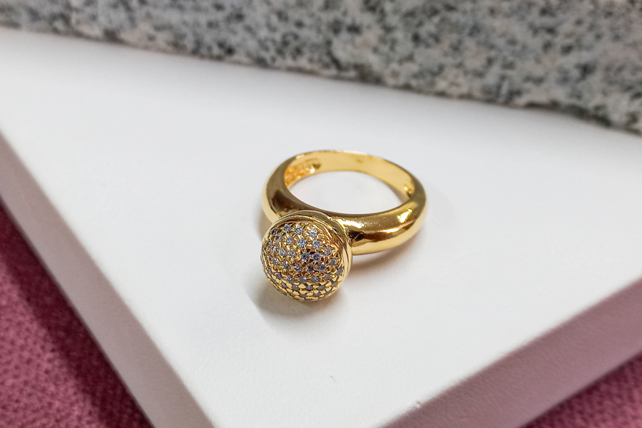ANEL BANHADO EM OURO, CRISTAL REDONDO 19mm