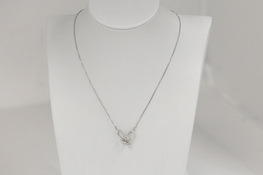 GARGANTILHA BANHADA EM RÓDIO BRANCO, VENEZIANA 0,80mm, 45cm COMPRIMENTO, CORAÇÃO 6mm LARGURA E GATO 7,50mm ALTURA