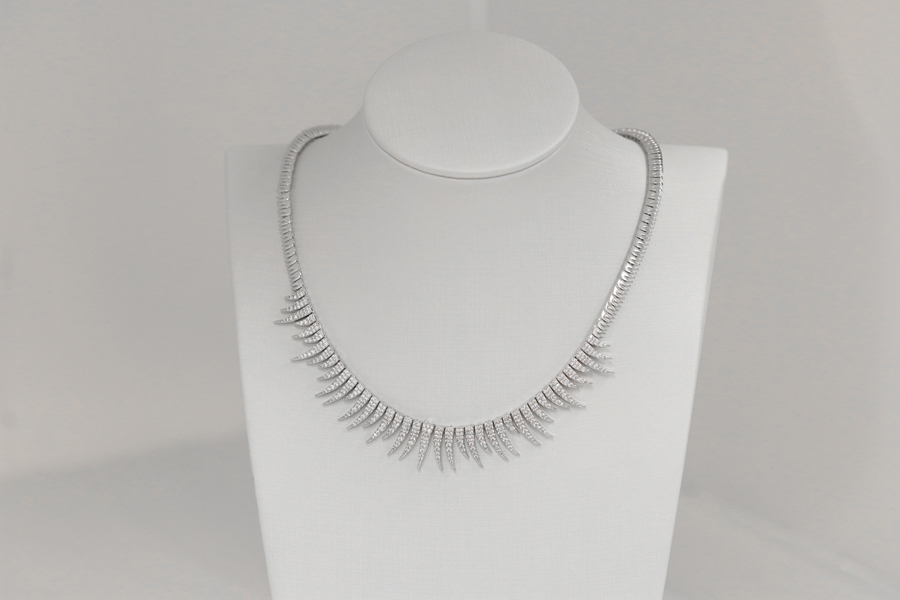 GARGANTILHA BANHADA EM RÓDIO BRANCO, PONTO DE LUZ 4mm, ELO VENEZIANA 0,80mm, 40cm COMPRIMENTO, EXTENSOR 5cm COMPRIMENTO, CRAVAÇÃO INGLESA