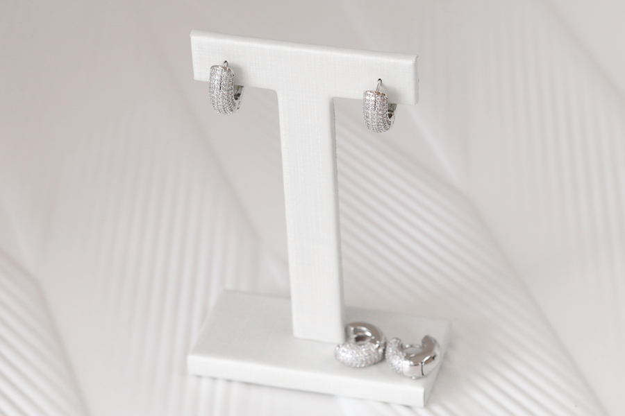 BRINCO BANHADO EM RÓDIO BRANCO, ARGOLINHA 12mm DIÂMETRO, COM 18 ZIRCÔNIAS