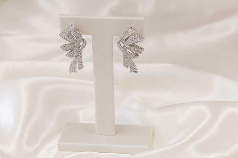 BRINCO BANHADO EM RÓDIO BRANCO, PONTO DE LUZ 3mm, CRAVAÇÃO INGLESA