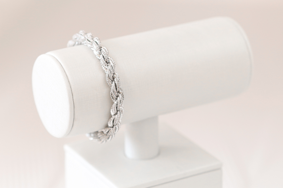 PULSEIRA BANHADA EM RÓDIO BRANCO, CORRENTE ELO 3,20mm LARGURA, EXTENSOR 5cm COMPRIMENTO E PESO 3,50g