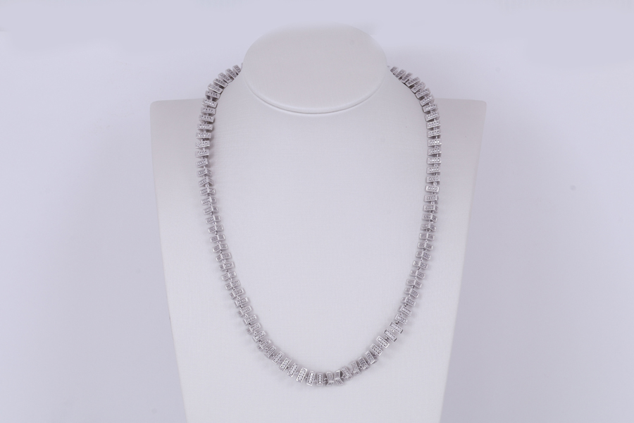 GARGANTILHA BANHADA EM RÓDIO BRANCO, PONTO DE LUZ 4mm, ELO VENEZIANA 0,80mm, 40cm COMPRIMENTO, EXTENSOR 5cm COMPRIMENTO, CRAVAÇÃO INGLESA