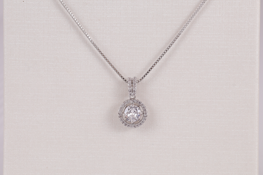 GARGANTILHA BANHADA EM RÓDIO BRANCO, VENEZIANA 0,80mm, 40cm COMPRIMENTO E PINGENTE 39mm ALTURA