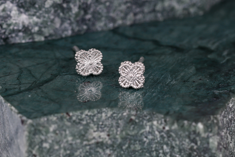 BRINCO EM PRATA, TREVO EM FILIGRANA, 4,30mm ALTURA