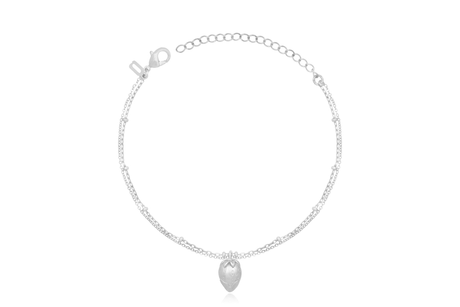 PULSEIRA BANHADA EM PRATA LEVE, ELO VENEZIANA LONGA 1,50mm LARGURA, 3 FIOS, EXTENSOR 5cm COMPRIMENTO, PONTO DE LUZ 5mm E CORAÇÃO 9mm LARGURA