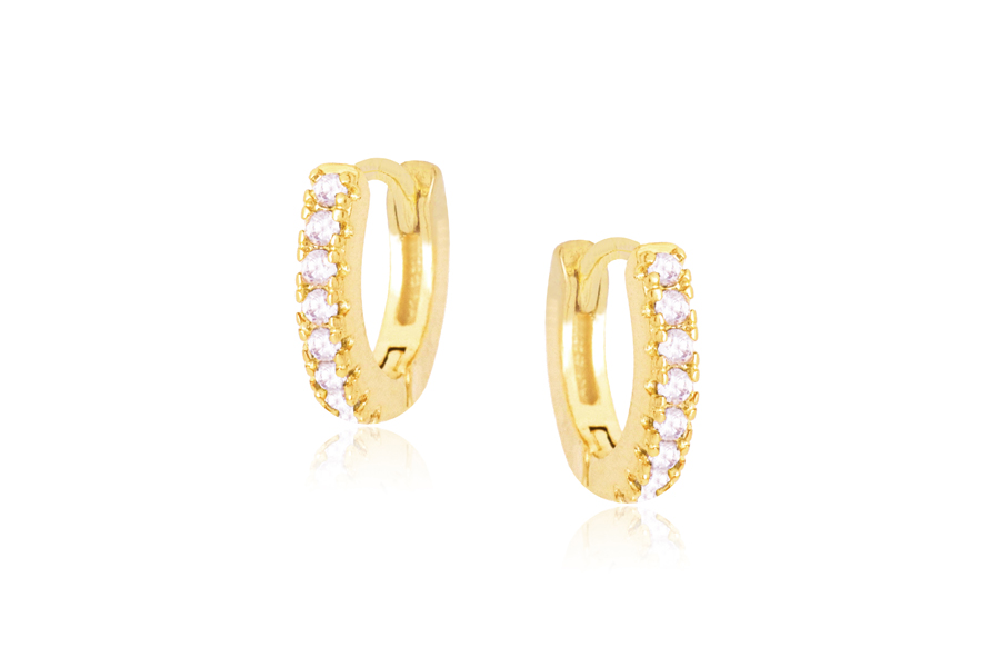 BRINCO BANHADO EM OURO, 24mm ALTURA, 9,50mm LARGURA E ZIRCÔNIA 8mm, PARA TODAS AS CORES