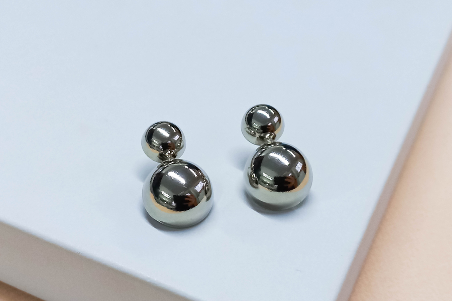 BRINCO BANHADO EM RÓDIO BRANCO, ARGOLINHA 11mm DIÂMETRO, COM ESFERA 8mm DIÂMETRO