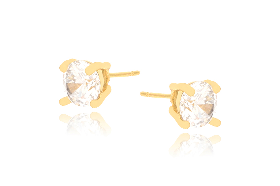 BRINCO BANHADO EM OURO, CORAÇÃO ZIRCÔNIA 4X4mm, PARA QUALQUER COR DE PEDRA