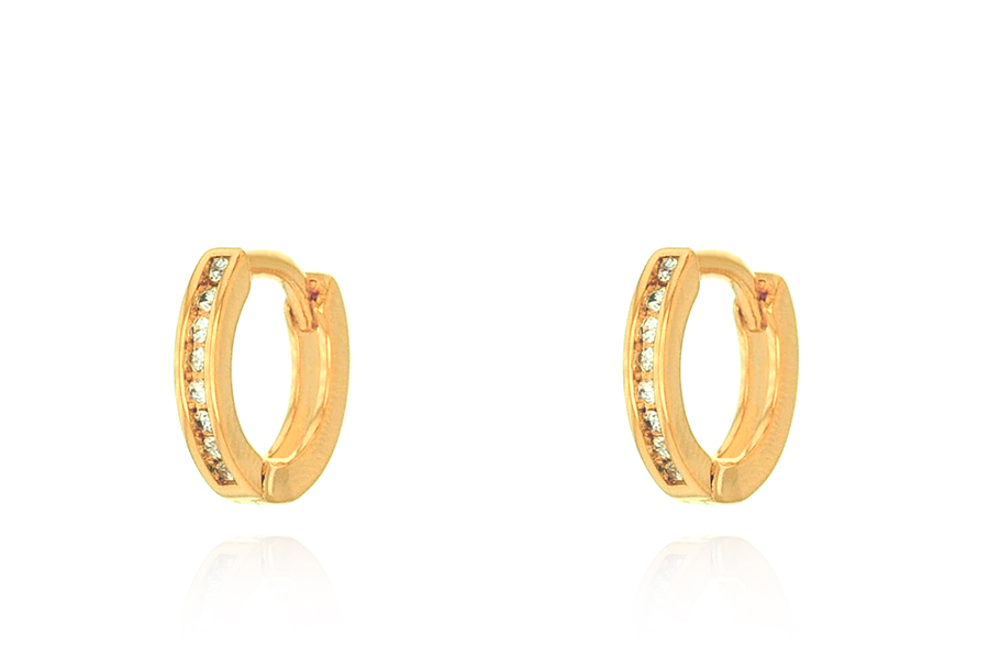 BRINCO BANHADO EM OURO, 15mm ALTURA, 8,40mm DE LARGURA COM UMA FILEIRA DE ZIRCÔNIA