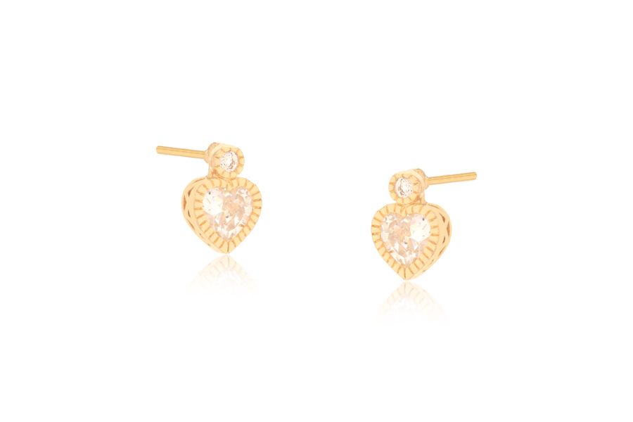 BRINCO BANHADO EM OURO, CORAÇÃO E PONTO DE LUZ 6mm ALTURA