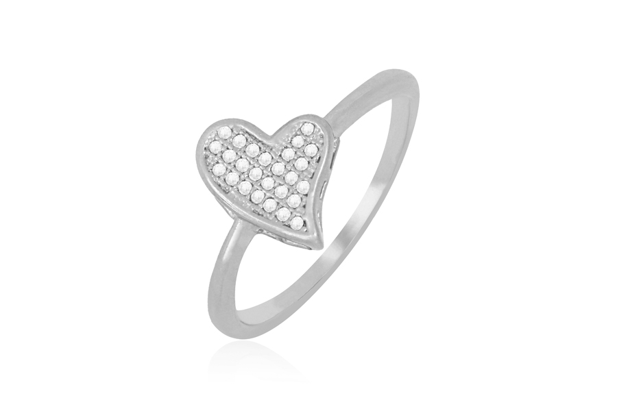 ANEL EM PRATA, CORAÇÃO, COM BANHO DE RÓDIO BRANCO