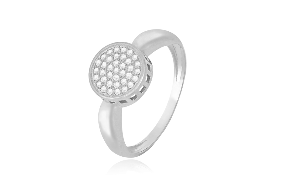 ANEL EM PRATA, SOLITÁRIO 4mm, COM BANHO DE RÓDIO BRANCO, COLEÇÃO AURA