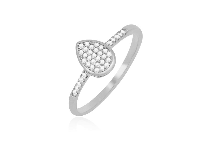 ANEL EM PRATA, ENTRELAÇADO COM ZIRCÔNIA GOTA 5x3mm E 16 ZIRCÔNIAS