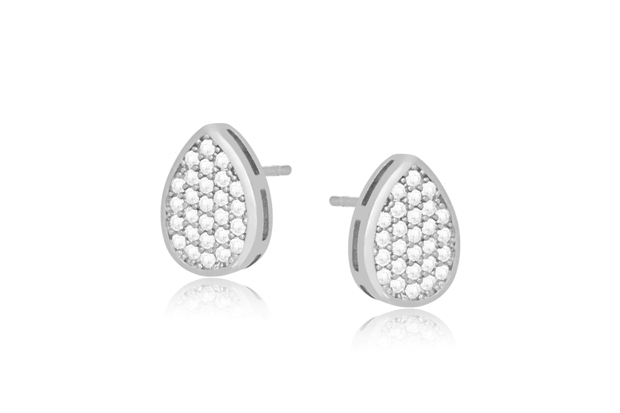BRINCO BANHADO EM RÓDIO BRANCO, PONTO DE LUZ 3mm, CRAVAÇÃO INGLESA