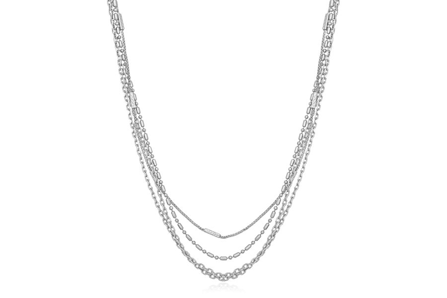 GARGANTILHA BANHADA EM RÓDIO BRANCO, ELO 1,10mm LARGURA, 45cm COMPRIMENTO, BORBOLETA 28,50mm LARGURA