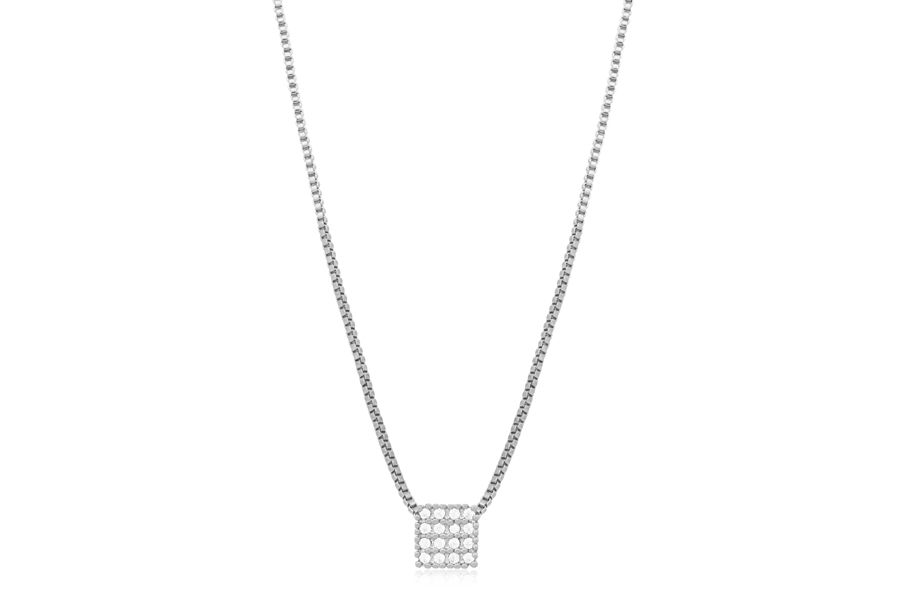 GARGANTILHA EM AÇO, BANHADA EM RÓDIO NEGRO, 2 PINGENTES RETANGULARES, COM 2 ZIRCÔNIAS CARRÉ, ELO ESFERAS, 39+7cm COMPRIMENTO