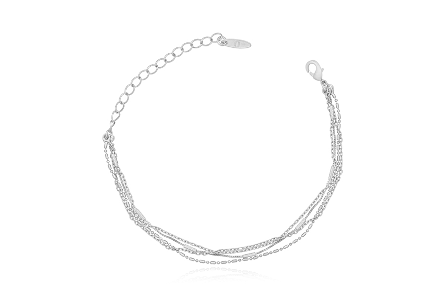 PULSEIRA BANHADA EM RÓDIO BRANCO, CORRENTE ELO 3,20mm LARGURA, EXTENSOR 5cm COMPRIMENTO E PESO 3,50g
