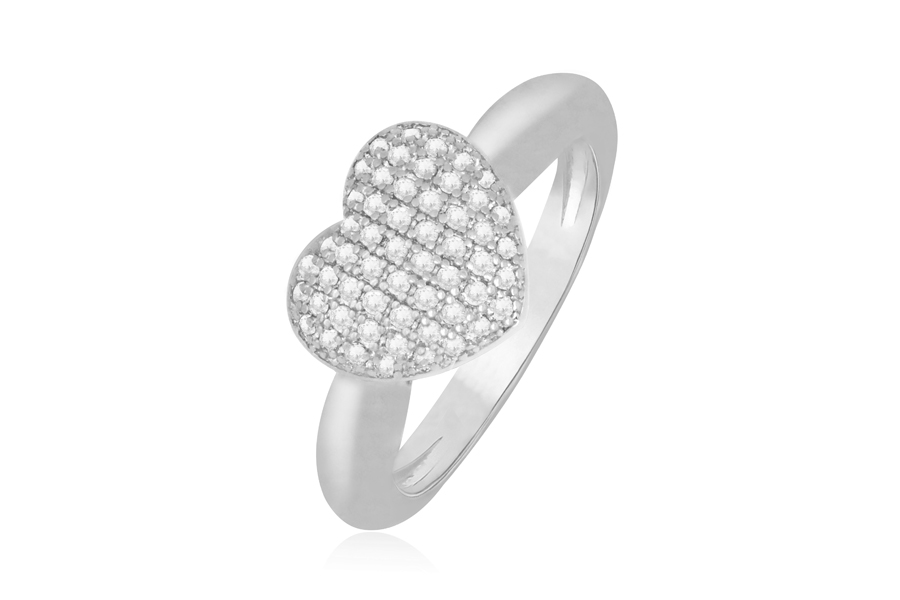 ANEL EM PRATA, CORAÇÃO, COM BANHO DE RÓDIO BRANCO