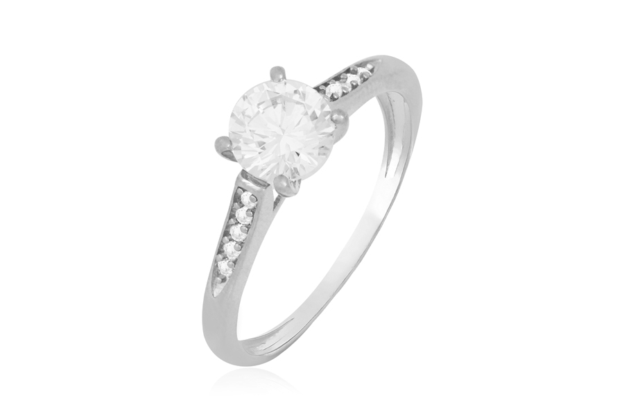 ANEL EM PRATA, SOLITÁRIO REDONDO 6mm DIÂMETRO, 6 GARRAS, MOISSANITE
