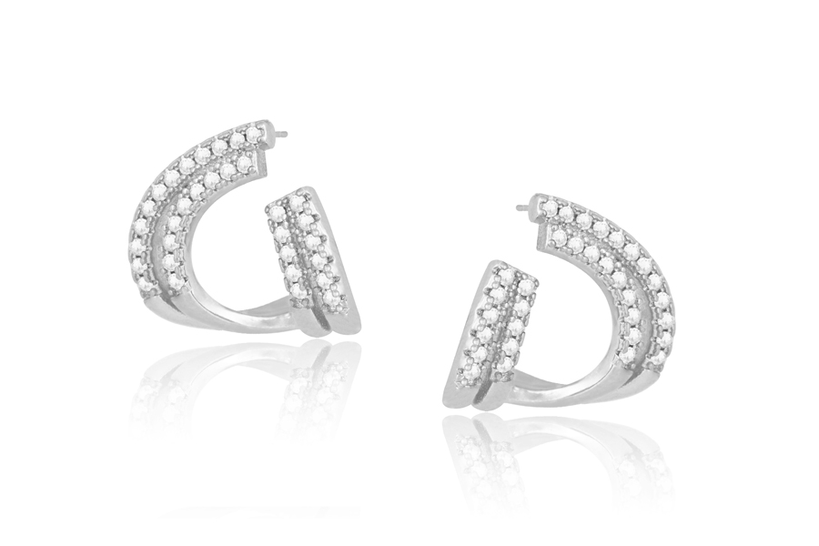BRINCO BANHADO EM RÓDIO BRANCO, 15mm ALTURA COM 21 ZIRCÔNIAS