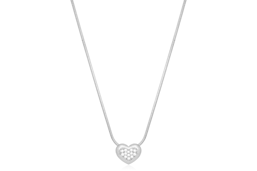 GARGANTILHA BANHADA EM RÓDIO BRANCO, ELO OVAL 9,50mmX6,50mm, 80cm COMPRIMENTO E FECHO CORAÇÃO COM ZIRCÔNIA