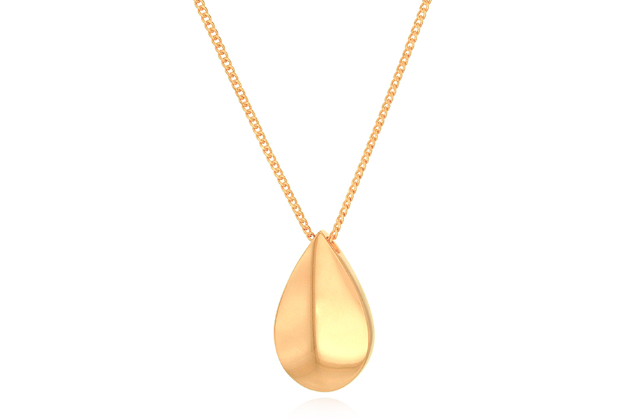 GARGANTILHA BANHADA EM OURO, ARO 1,50mm E PINGENTE GOTA 36mm ALTURA, LISO OU ACETINADO