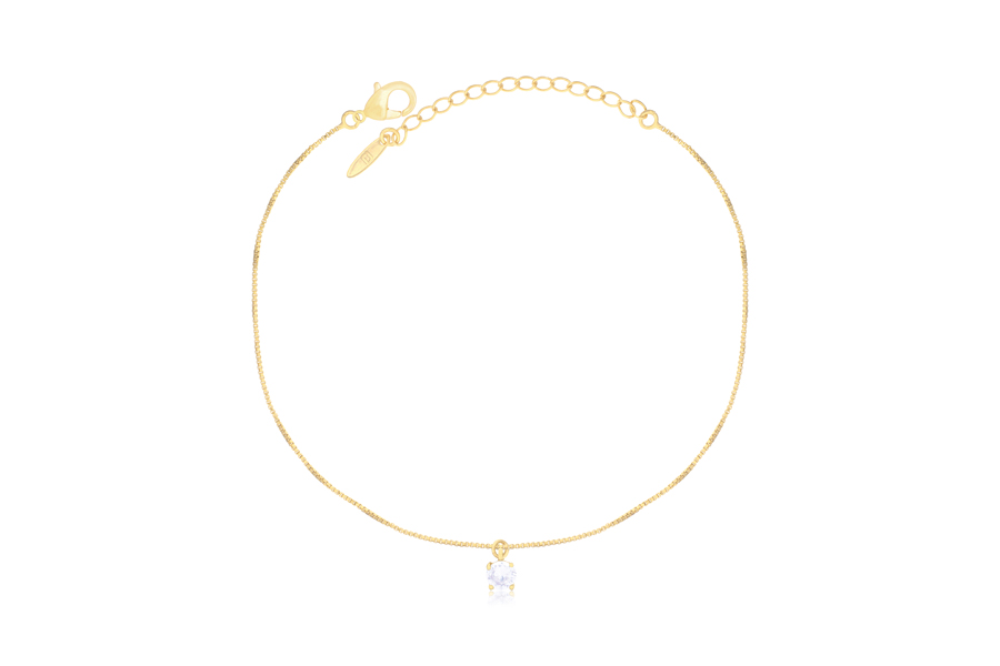 TORNOZELEIRA BANHADA EM RÓDIO BRANCO, ELO PORTUGUÊS 2,50mm ESPESSURA, 22cm COMPRIMENTO, OLHO GREGO 5mm LARGURA E PONTO DE LUZ 3,50mm DIÂMETRO