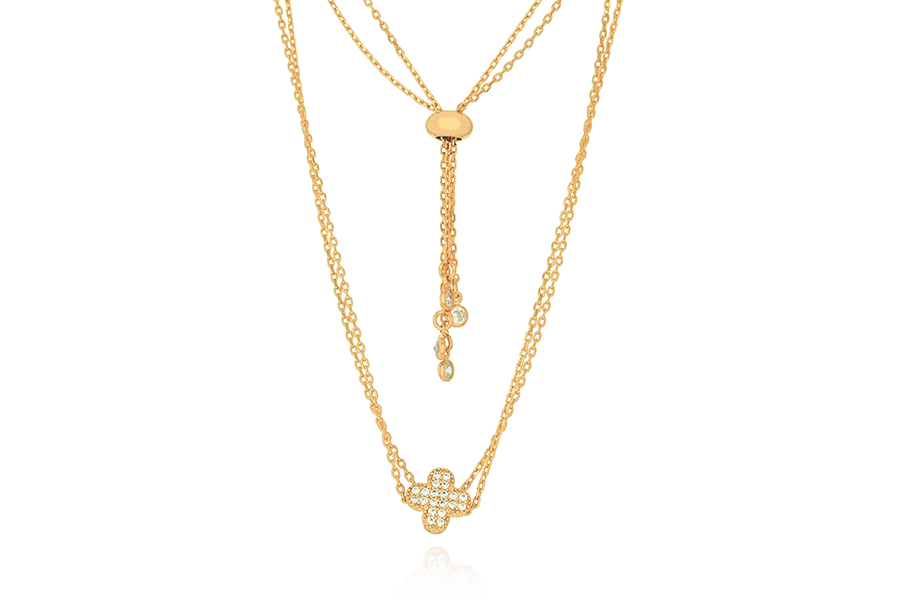 GARGANTILHA BANHADA EM OURO, VENEZIANA 0,80mm, 43cm COMPRIMENTO E ZIRCÔNIA REDONDA 8mm, PARA QUALQUER COR DE PEDRA