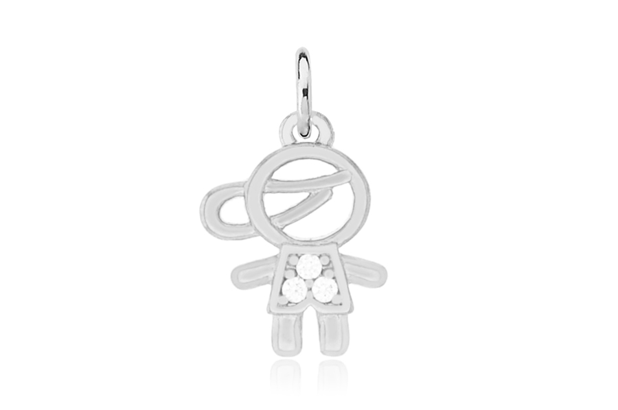 PINGENTE BANHADO EM RÓDIO BRANCO, MENINA 11mm ALTURA COM 3 ZIRCÔNIAS, COLEÇÃO COLLECT