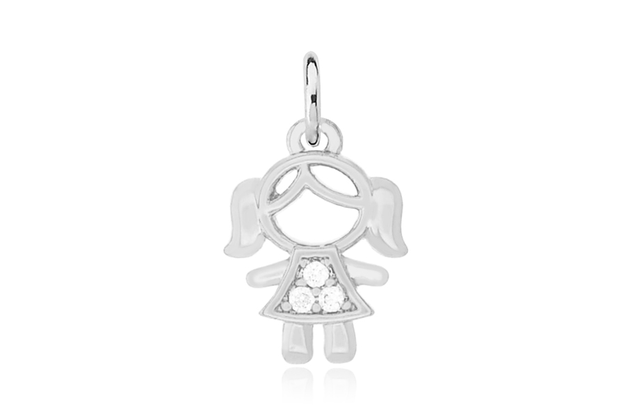PINGENTE BANHADO EM RÓDIO BRANCO, MENINO 11mm ALTURA COM 3 ZIRCÔNIAS, COLEÇÃO COLLECT