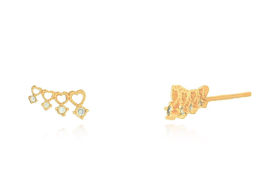 BRINCO BANHADO EM OURO, INFANTIL, PONTO DE LUZ E CORAÇÃO 4,50mm LARGURA, COM TARRAXA BABY