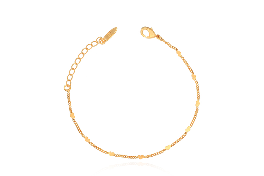 PULSEIRA BANHADA EM OURO, ELO 2,30mm LARGURA, 16cm COMPRIMENTO, EXTENSOR 5cm COMPRIMENTO E CORAÇÃO 7mm LARGURA, PARA QUALQUER COR