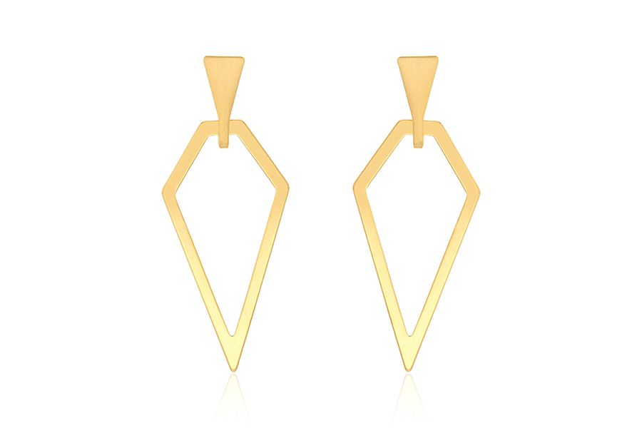 BRINCO BANHADO EM OURO, ARGOLA TRIANGULAR 31mm ALTURA, LISO OU ACETINADO, PROVIN OPAC