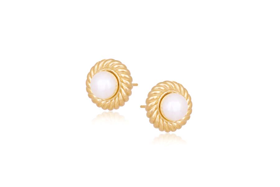 BRINCO BANHADO EM OURO, PÉROLA SHELL 14mm, LINHA TRADICIONAL