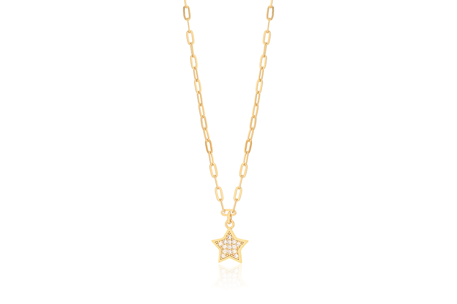 GARGANTILHA BANHADA EM OURO, ELO 1,80mm LARGURA, 40cm COMPRIMENTO E CORAÇÃO 11mm LARGURA COM ZIRCÔNIAS BRANCAS OU COLORIDAS