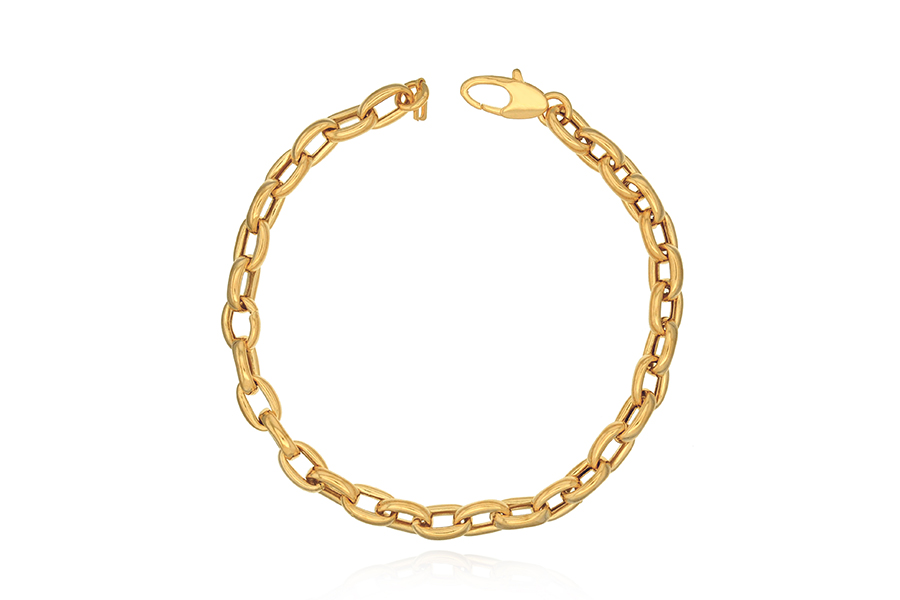 PULSEIRA BANHADA EM OURO, CORRENTE ELO CORDA 4mm, 17cm COMPRIMENTO, EXTENSOR 5cm COMPRIMENTO E PESO 9,10g