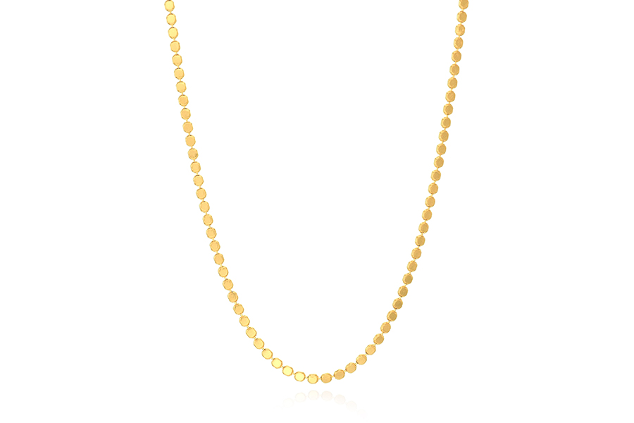 CORRENTE BANHADA EM OURO, ELO VENEZIANA 0,80mm, 45cm COMPRIMENTO, EXTENSOR 5cm COMPRIMENTO E PESO 2,20g