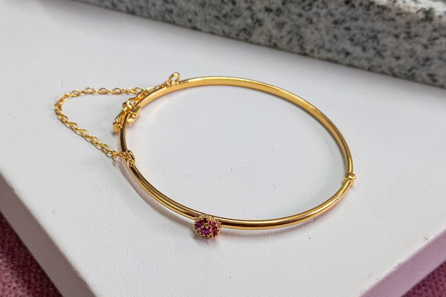 PULSEIRA BANHADA EM OURO, ELO PORTUGUÊS 7mm DIÂMETRO, 2,50mm ESPESSURA E CORAÇÃO 27mm LARGURA, LISO OU ACETINADO