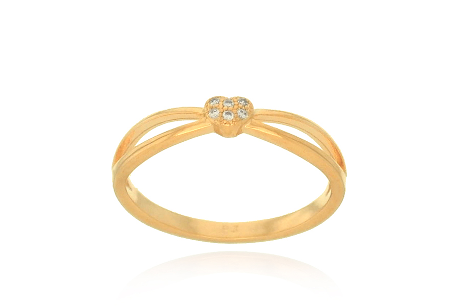 ANEL BANHADO EM OURO, CORAÇÃO LISO E ZIRCÔNIA, 3,40mm LARGURA