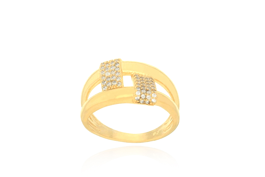 ANEL BANHADO EM OURO, COM 30 ZIRCÔNIAS NAVETE E REDONDA