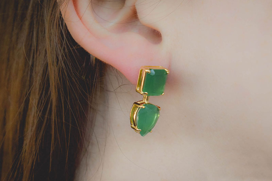 BRINCO BANHADO EM OURO CRISTAL TRAPÉZIO 14X13X3mm