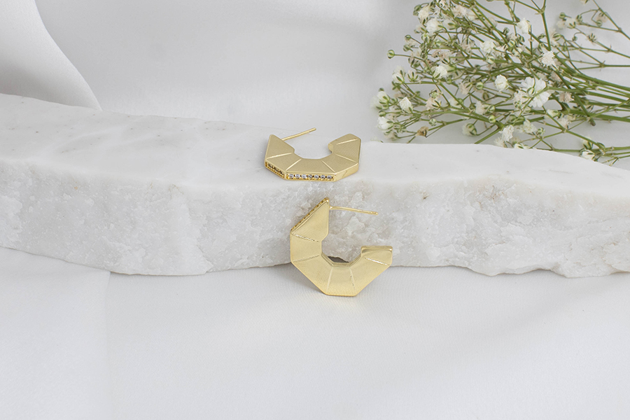 BRINCO BANHADO EM OURO, REDONDO VAZADO 29mm, COM ZIRCÔNIAS