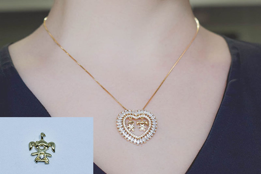 PINGENTE BANHADO EM OURO, CRISTAL REDONDO 20mm, 2 MENINOS