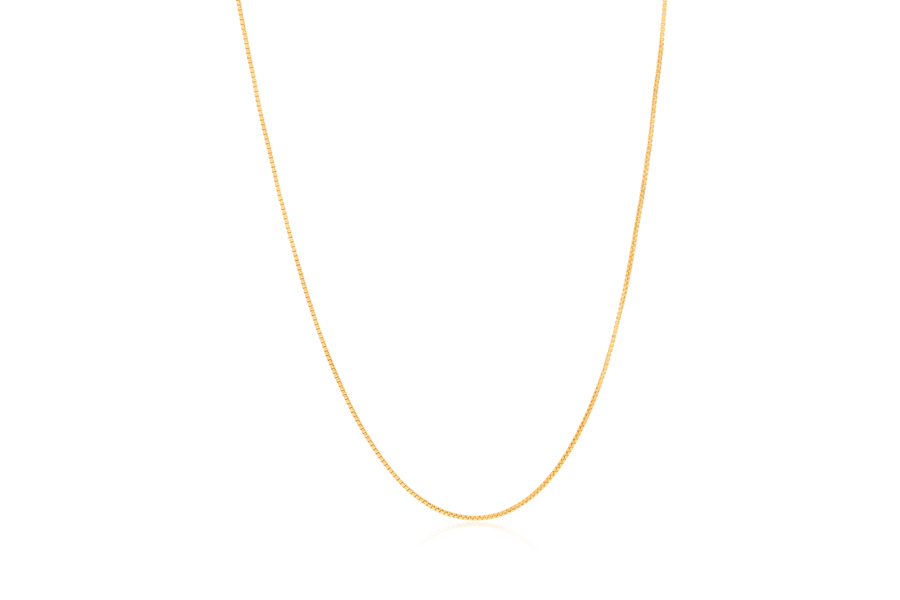 GARGANTILHA BANHADA EM OURO, ELO VENEZIANA 0,80mm, 45cm COMPRIMENTO, EXTENSOR 5cm COMPRIMENTO E PONTO DE LUZ 14mm, LINHA TRADICIONAL