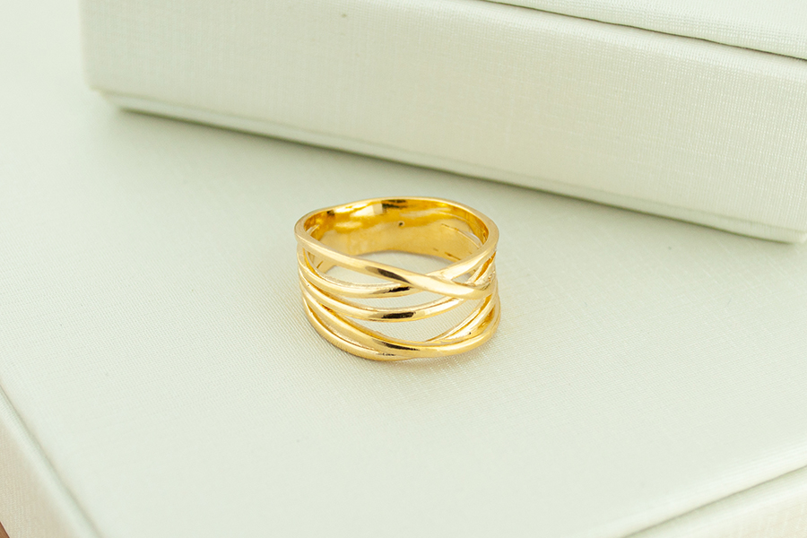ANEL BANHADO EM OURO, 4,50mm LARGURA, 5 FILEIRAS E BORDAS