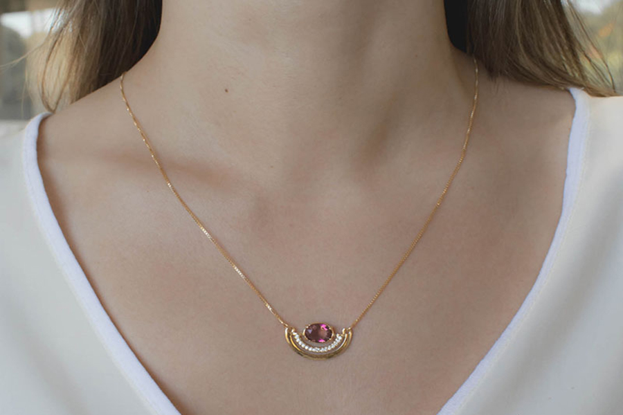 GARGANTILHA BANHADA EM OURO, VENEZIANA 0,80mm, 40cm COMPRIMENTO E CORAÇÃO COLORIDO 10mm LARGURA