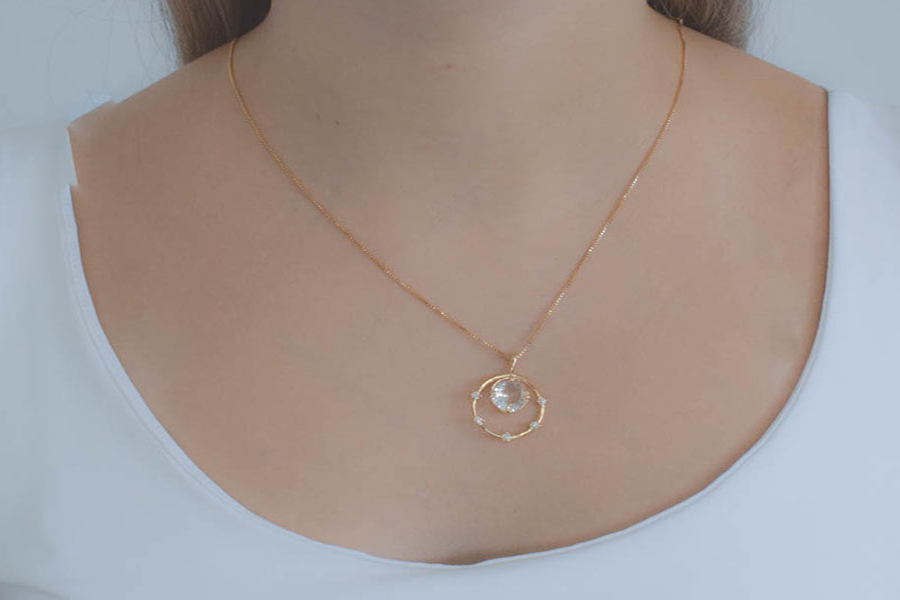 PINGENTE BANHADO EM OURO, CRISTAL REDONDO 20mm, CASAL