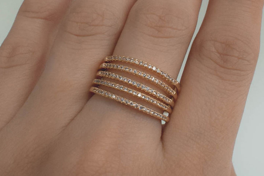 ANEL BANHADO EM OURO, COM 130 ZIRCÔNIAS