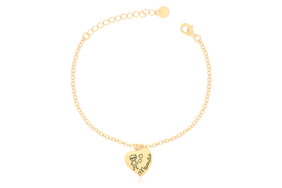 PULSEIRA BANHADA EM OURO, ELO PORTUGUÊS 3mm, ELO CORAÇÃO 4,20mm LARGURA, PINGENTE CORAÇÃO 11mm LARGURA COM MENINA